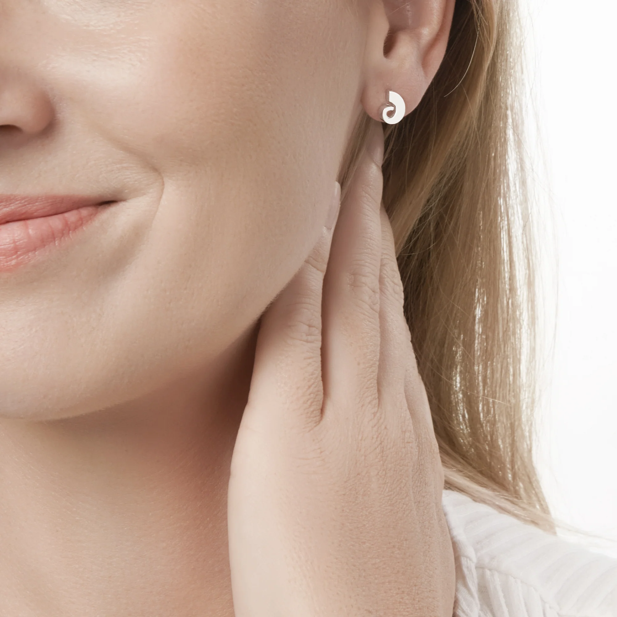 Gentle whirls of silver to grace each ear. Stud earrings.